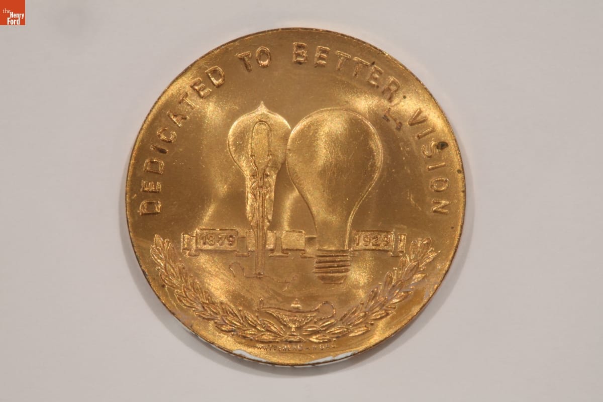 obverse: LIGHT'S GOLDEN JUBILEE / THOMAS A. EDISON reverse: DEDICATED TO BETTER VISION