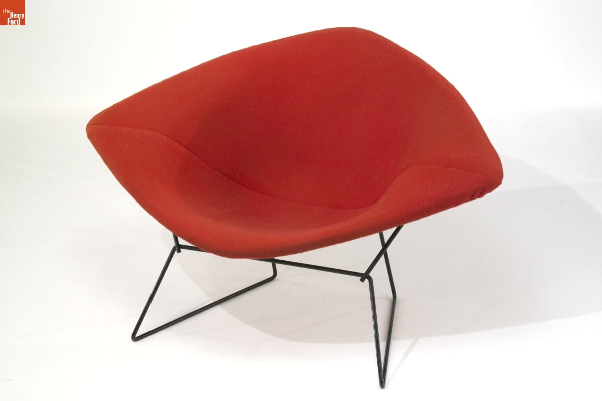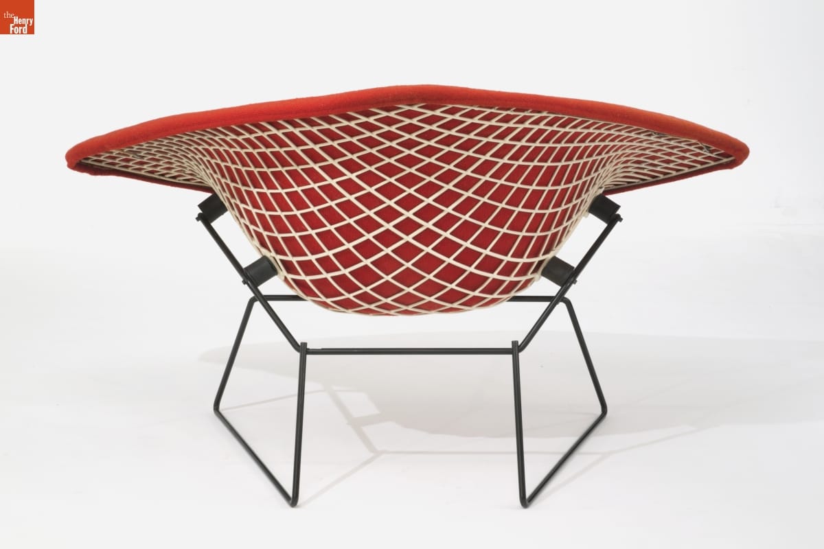Italian-born designer, painter, and sculptor Harry Bertoia's fascination with metalcrafts touched all areas of his work, from jewelry to furniture. Inspired by a household wire dish rack, he designed his steel chairs as functional sculpture--comfortable, but also "studies in space, form, and metal." And studies in unity too: this chair's diamond-shaped silhouette repeats the basic welded mesh pattern.
