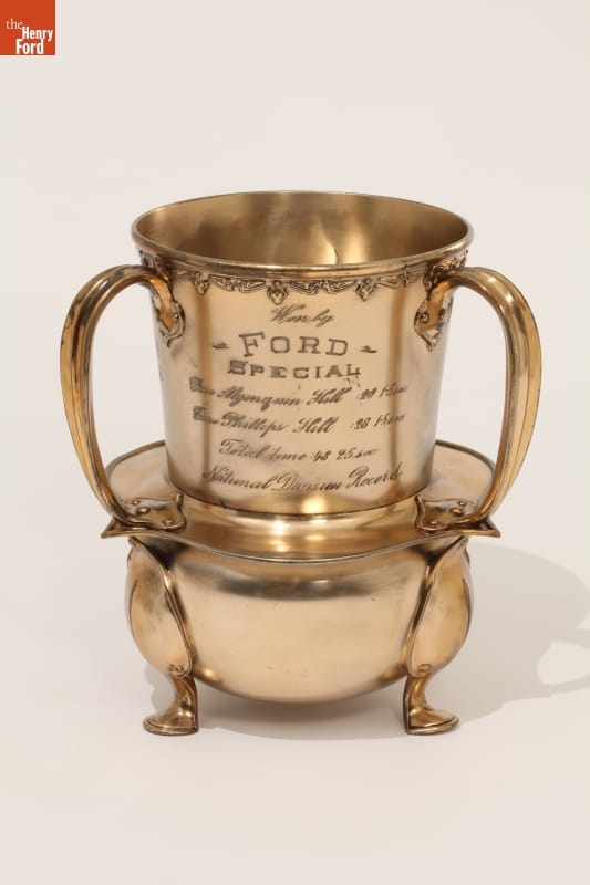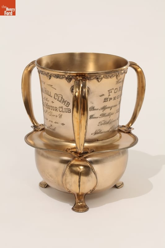 Hill climbing contests combine steep grades, hairpin turns and dangerous drops for some of the most challenging races in motorsport. Early competitions not only tested the driver's skills but showcased the practical performance of the automobile. At the 1911 Algonquin Hill Climb, Frank Kulick won this trophy when he piloted a Ford to victory in the non-stock division race.