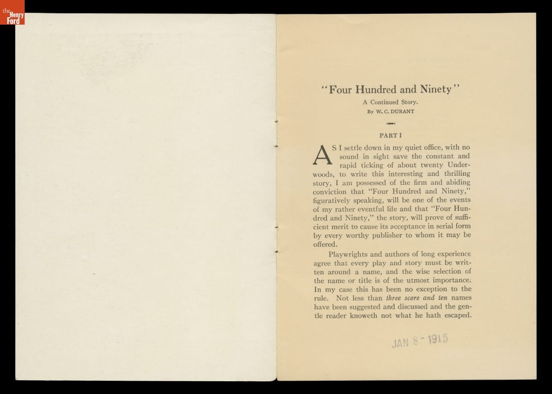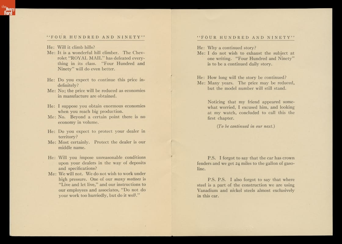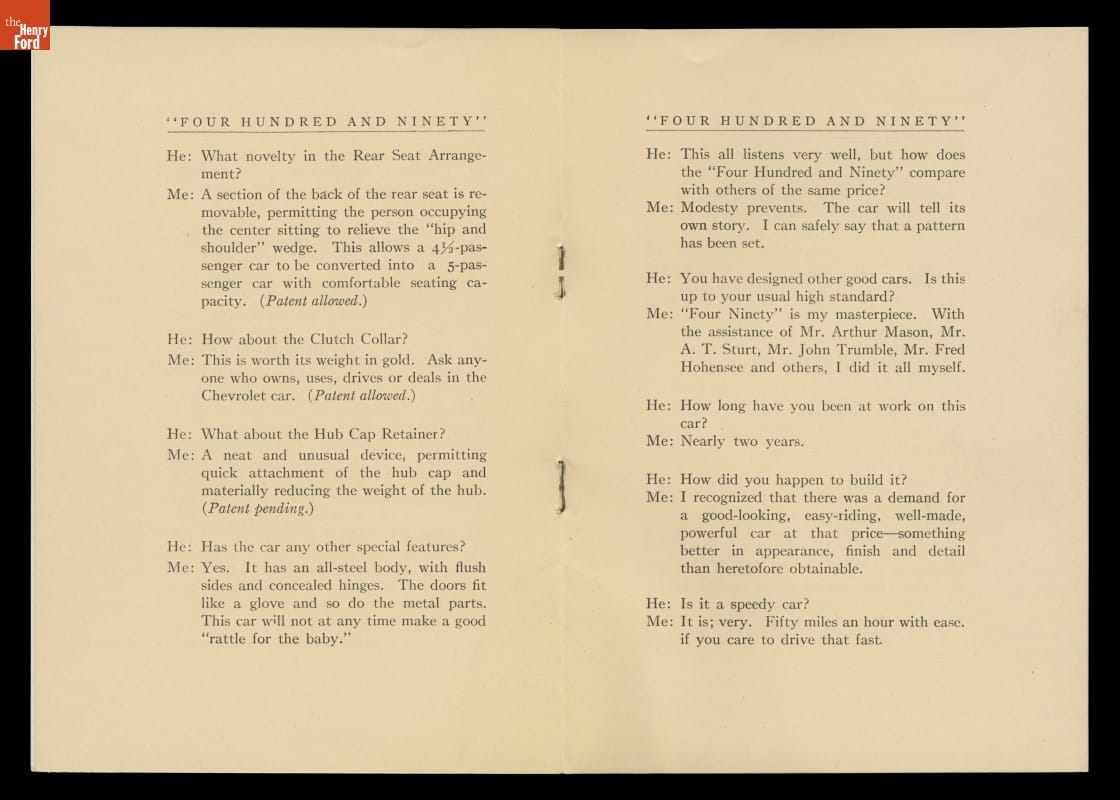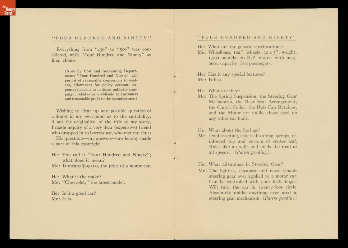 1915 Chevrolet Motor Co. Sales Brochure, "The Four Hundred and Ninety"