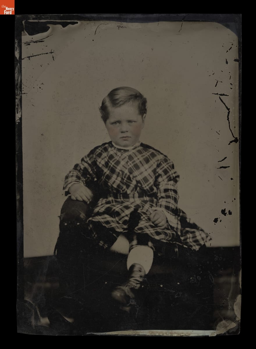 Young Boy in a Plaid Dress with Pantaloons, 1860-1870