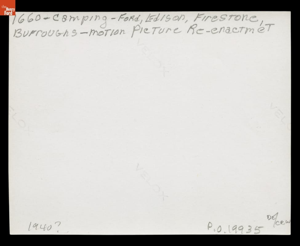 Between 1916 and 1924, Henry Ford, Thomas Edison, Harvey Firestone, and John Burroughs embarked on a series of camping trips. They called themselves the Vagabonds and enjoyed retreating from the fast-paced world to explore nature. Years later, Henry Ford recreated the trips on the grounds of Greenfield Village in memory of his friends and of all the good times they had together.