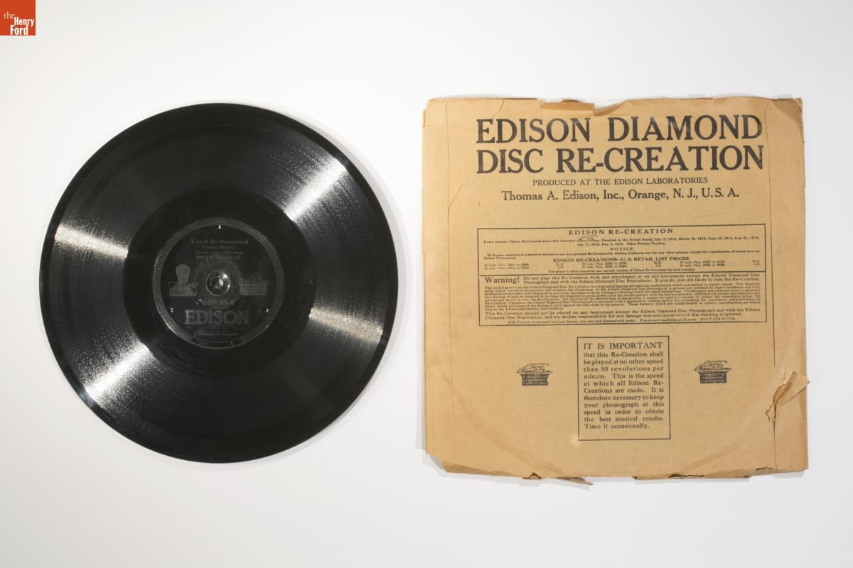 Manufactured by Thomas A. Edison, Inc., West Orange, New Jersey; "Sahara (Soon We'll Be as Dry as You)" composed by Jean Schwartz and performed by Billy Murray and "You'd Be Surprised" composed by Irving Berlin and also sung by Billy Murray.