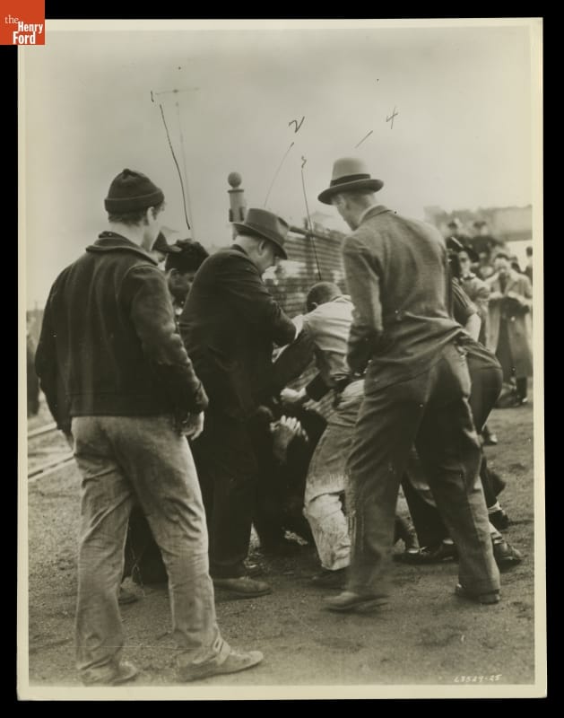 Ford Motor Company refused to recognize the United Auto Workers labor union and hired guards to resist unionization among Ford employees. In May 1937, men from Ford's Service Department attacked labor organizers on a pedestrian overpass at Ford's Rouge Plant, beating several men and women. This bloody "Battle of the Overpass" became a lasting symbol of the American labor struggle.