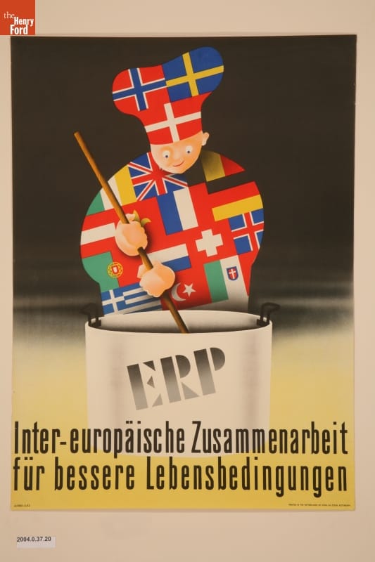 European Recovery Program Poster, "Inter-europaische Zusammenarbeit fur bessere Lebensbedingungen," circa 1950