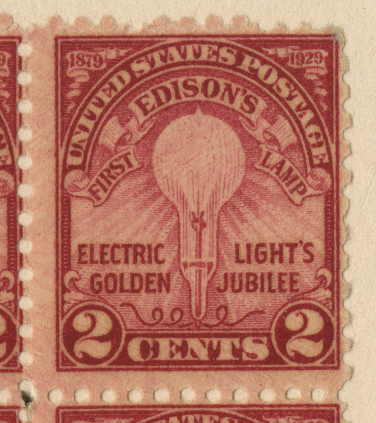 Electric Light's Golden Jubilee 2 Cent Postage Stamp, 1929