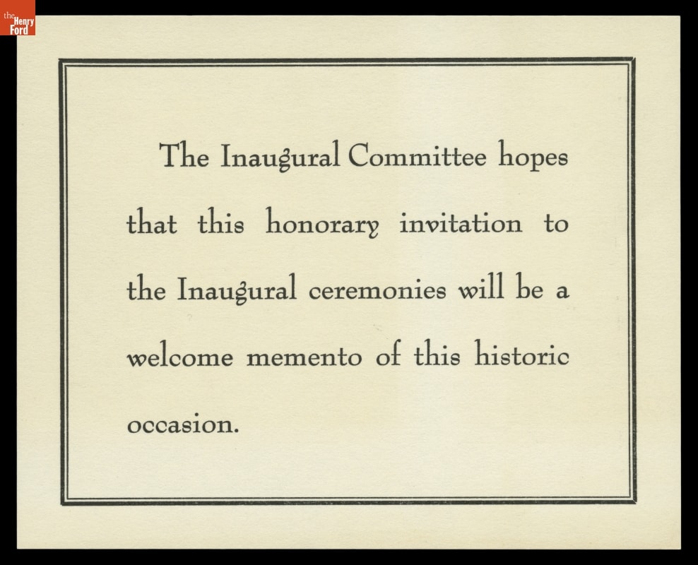 The Inaugural Committee hopes that this honorary invitation to the Inaugural ceremonies will be a welcome memento of this historic occasion.
