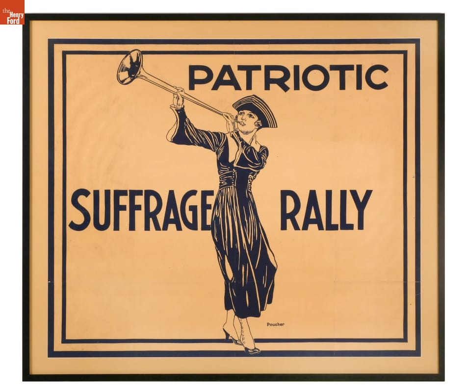 In the early 20th century, women and men alike joined the already decades-long fight for women's suffrage, or equal voting rights. They often appealed to patriotic sentiment, staging parades and organizing public demonstrations calling for the right to vote. This rally poster features a woman in a tricorne hat, associating suffragists with the patriots of the American Revolution.