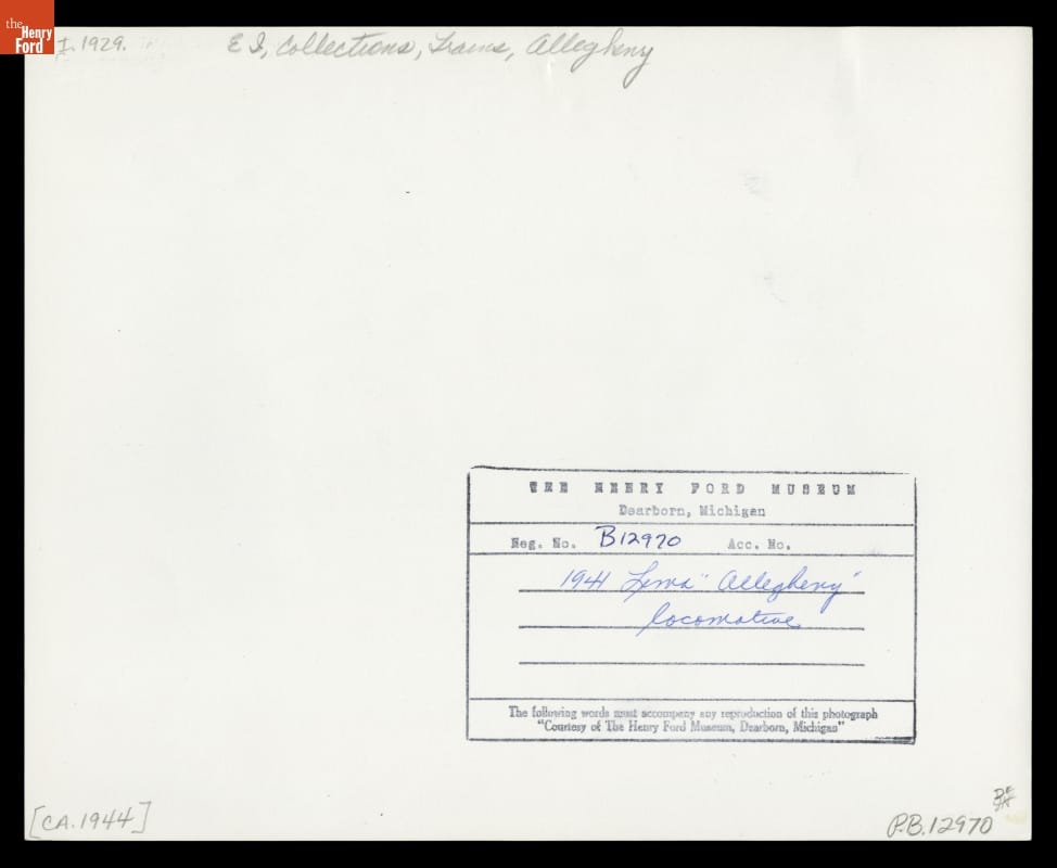 Allegheny Steam Locomotive in Greenfield Village, 1956