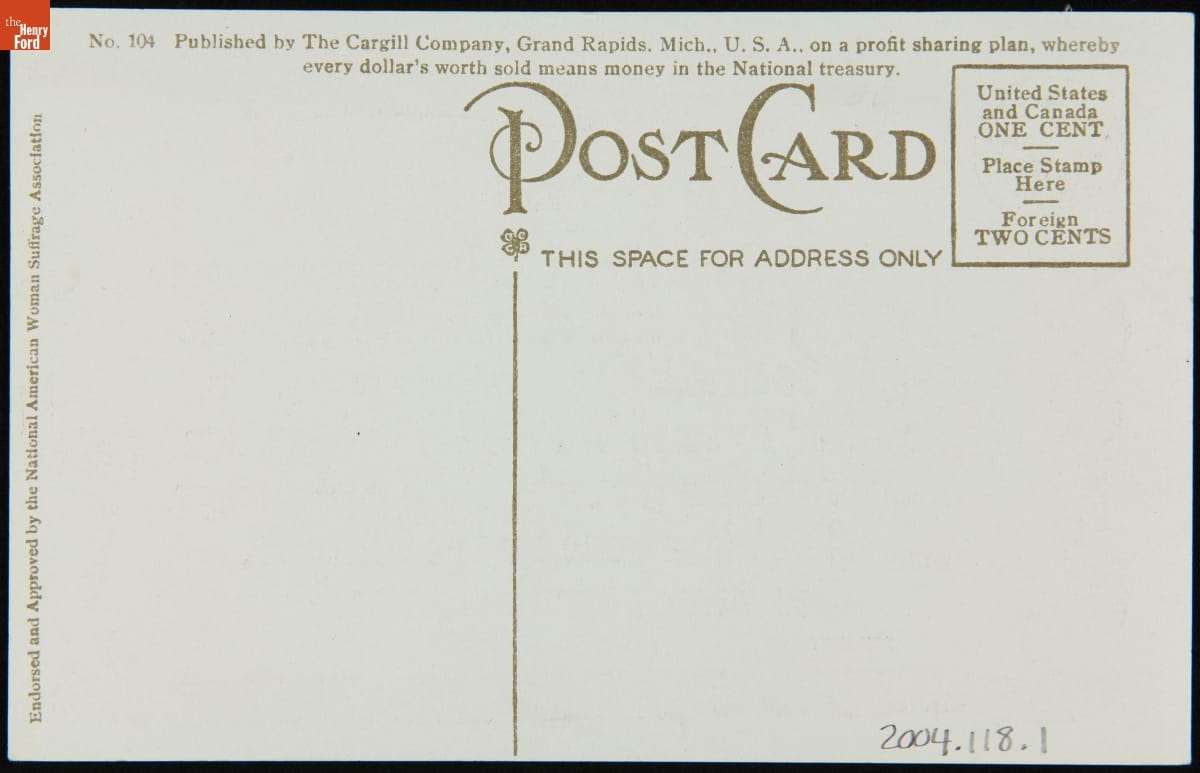Printed by the Cargill Company, Grand Rapids, Michigan for the National American Woman Suffrage Association.