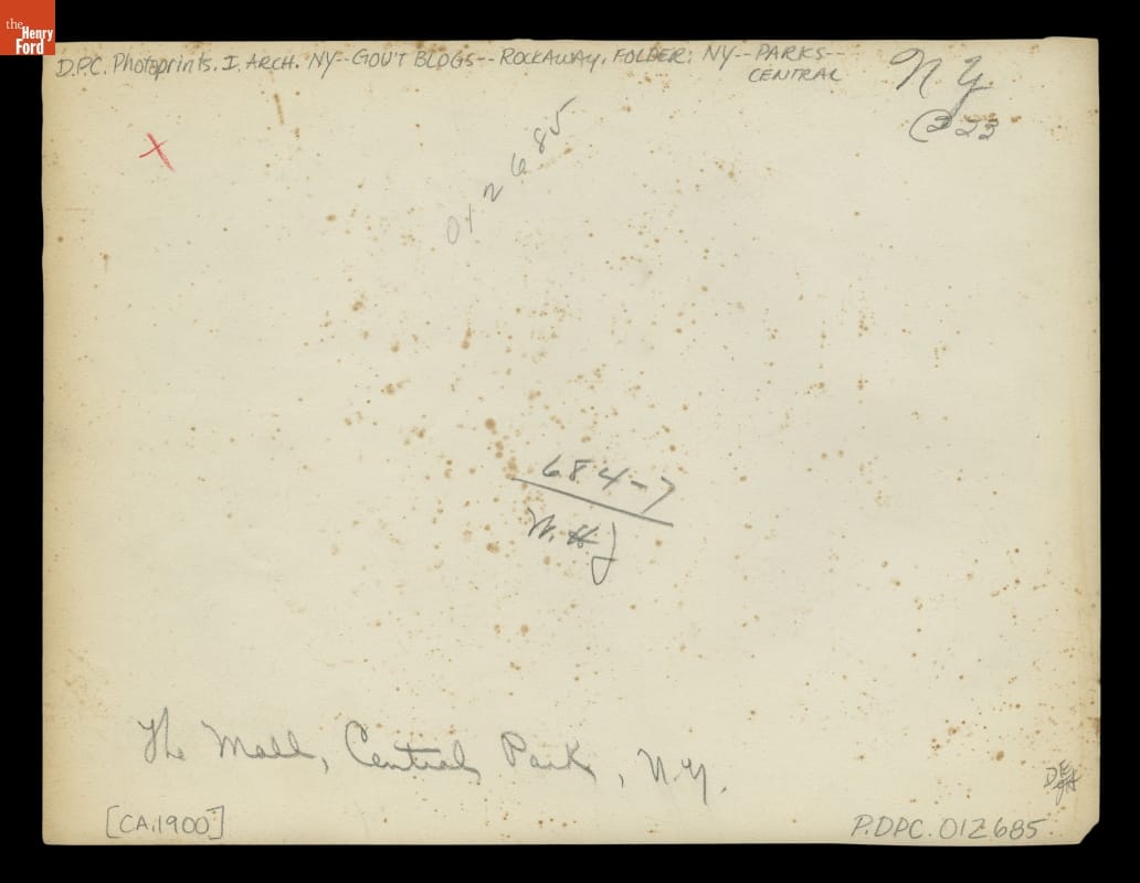 Central Park was the first and most influential of America's landscaped parks. Created in 1858, it was intended to provide recreational opportunities not only for the well-to-do but for the population as a whole. This turn-of-the-century photograph was taken by pioneering photographer William Henry Jackson for the Detroit Publishing Company.