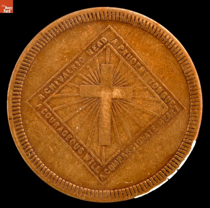 The Ku Klux Klan was reborn in the late 1910s and flourished in the early 1920s. It declined beginning in the mid-1920s, but never completely disappeared. This small KKK token contains innocuous phrasing and mystic-like symbols belying the hatred, vigilantism, and violence found under the hood of the Klan.