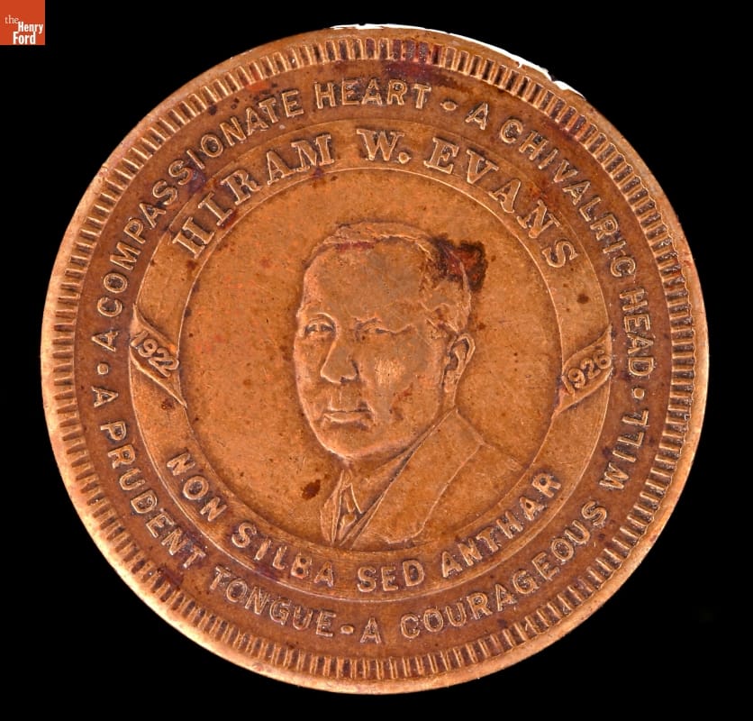 reverse, center: HIRAM W. EVANS / 1922 - 1926 / NON SILBA SED ANTHAR