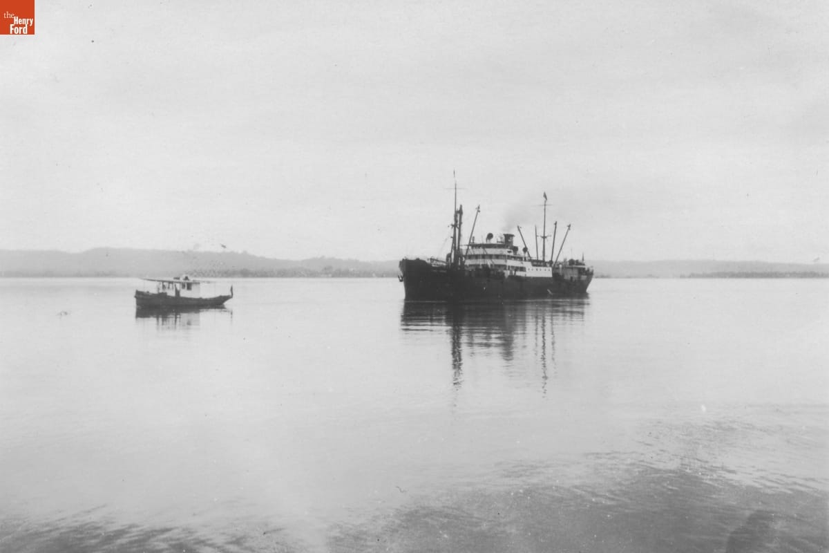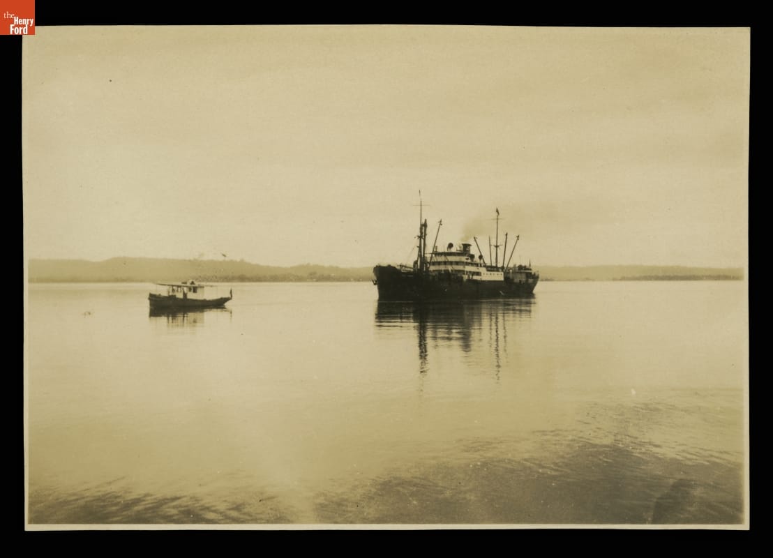 Steamer "Lake Ormoc" Being Towed by the Tugboat Santarem, Fordlandia, Brazil, 1930