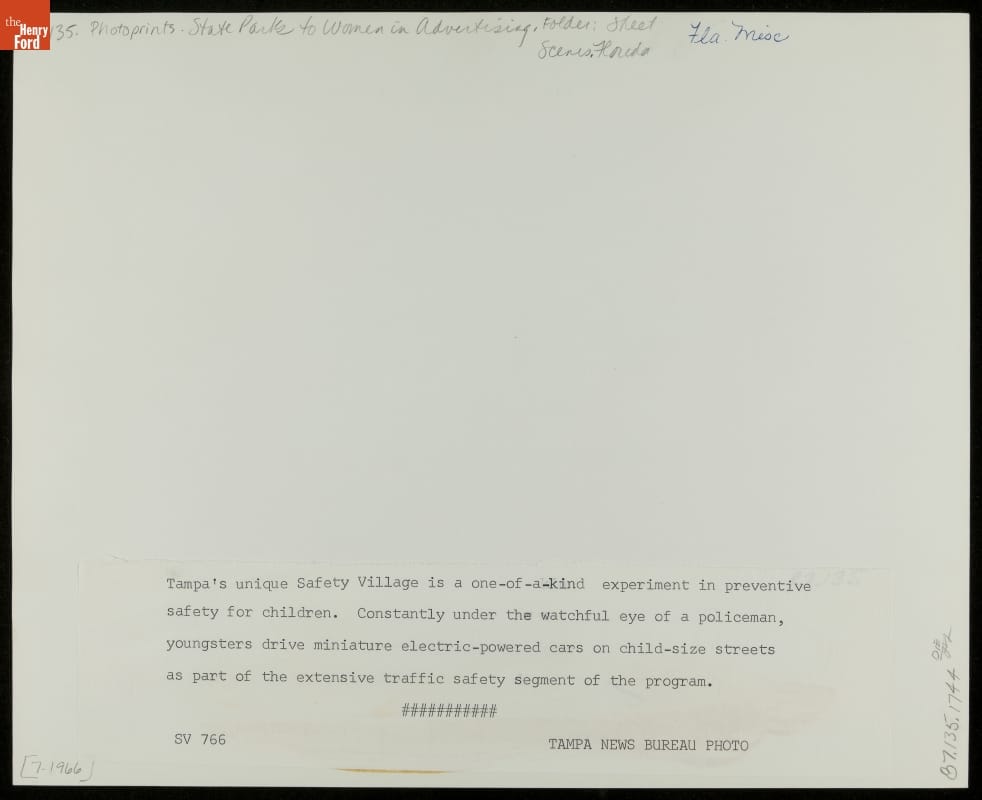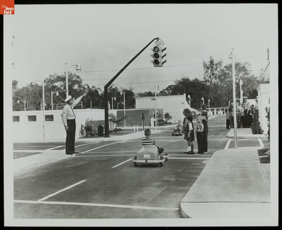 Tampa's "Safety Village" was a unique experiment in preventive safety for children. Long before they were old enough to ask for the keys to the family car, these children practiced traffic safety by driving small electric-powered cars on child-sized streets. Hopefully, they would remember these lessons a few years later, as teens at the wheel of their own cars.