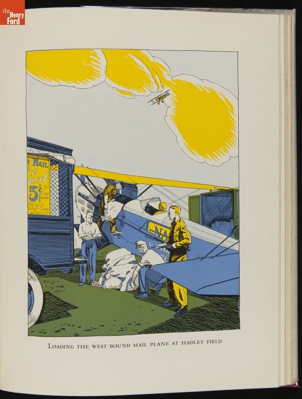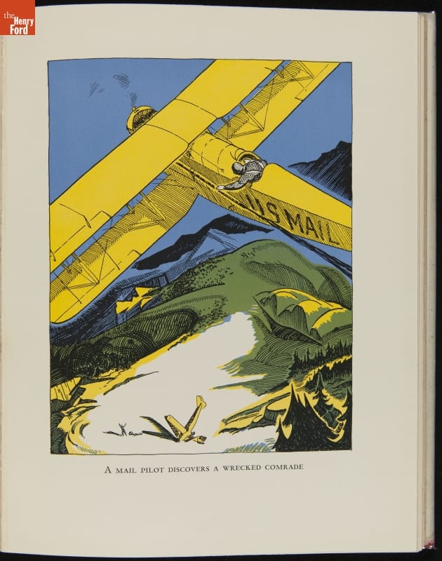 Published in 1930, Couriers of the Clouds by Edward Shenton told the story of air mail through vivid illustrations. Regular service started in 1918, with flights operated directly by the U.S. Post Office Department. Eight years later, the Post Office began contracting with commercial air carriers. Air mail subsidized the growth of America's airline network.