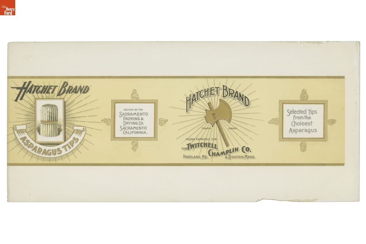 Can Label, "Hatchet Brand Asparagus Tips," circa 1900