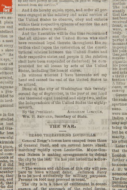 New York Evening Post Newspaper for September 23, 1862, "Emancipation Proclamation of President Lincoln"
