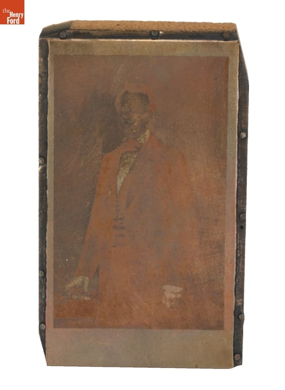 Thomas Irwin Starr (1903-1965) had a lifelong interest in President Abraham Lincoln. He began collecting Lincoln-related materials at an auction in 1929. Starr, editorial director for publications at Michigan Bell Telephone Company, amassed a collection of Lincolniana and wrote several books and articles about our 16th President. This printing block reproduces a famous Mathew Brady photograph of Lincoln taken in 1860.