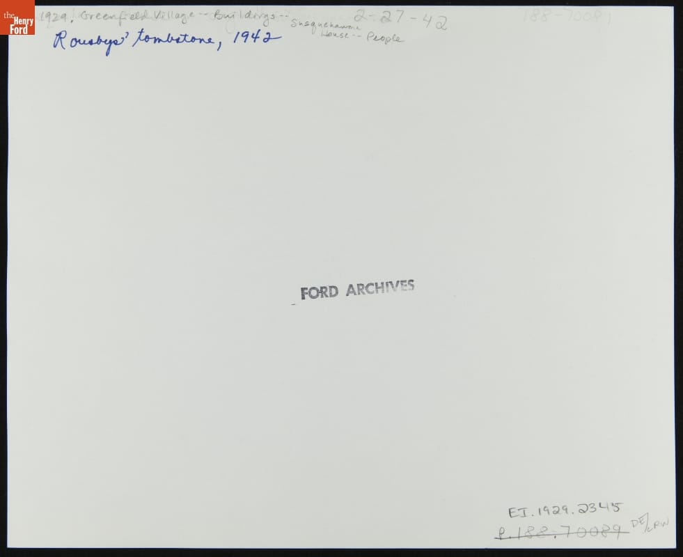 Tombstone Used to Mark the Grave of Christopher Rousby and John Rousby at the Original Site of Susquehanna House, 1942