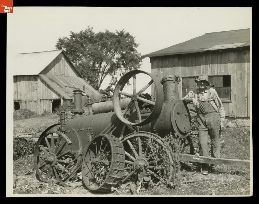 Circa 1879 Ames Portable Steam Engine in Farm Yard about 1929, Later Acquired for Henry Ford Museum