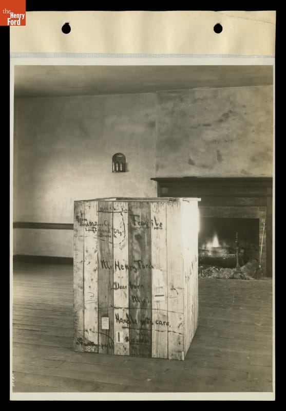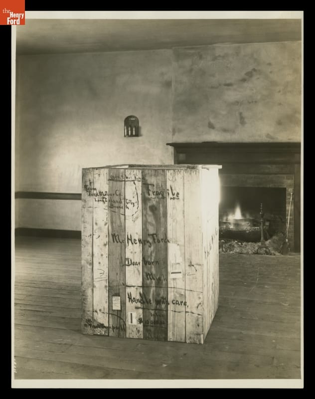 Abraham Lincoln Chair Still in Shipping Crate after Arrival in Greenfield Village, January 1930