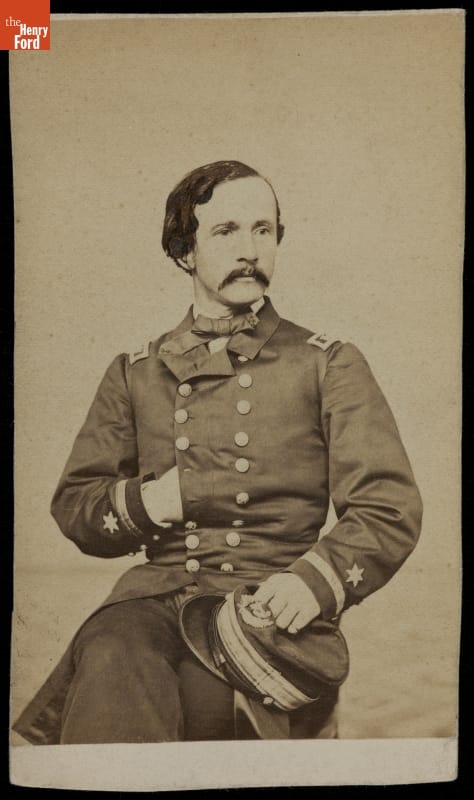 This carte-de-visite depicts a Union Naval Lieutenant with hand hidden in jacket, which was considered the pose of a gentleman. Professional photographers made cartes-de-visite beginning in the 1860s. Mounted on small cardboard stock, these early photographic prints proved popular in the United States from the Civil War through the 1880s. Americans exchanged and collected CdVs to help them remember celebrities and family.