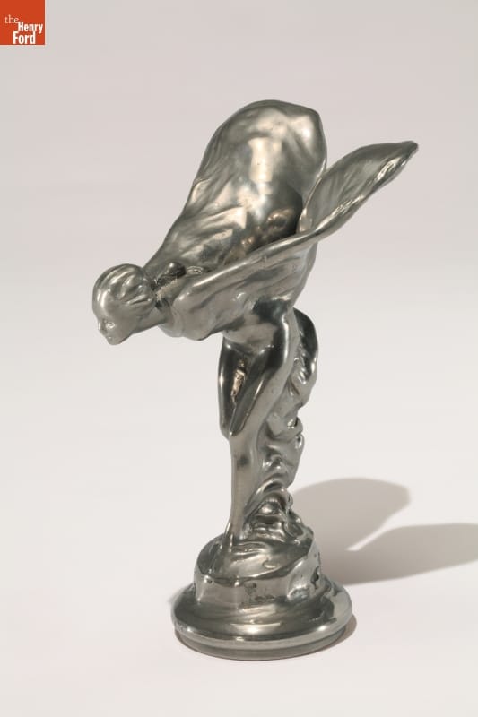 Many early 20th century luxury automobile manufacturers outfitted their vehicles with hood ornaments or mascots. These decorative mascots were not only an advertisement for the company, they were a symbol of the car owner's wealth and good taste. Rolls-Royce affixed versions of this windswept mascot, designed by Charles Sykes, to the fronts of their models.