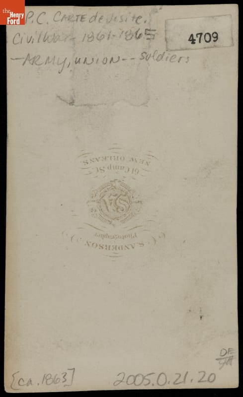 Photographer's imprint text on back reads: S. ANDERSON / Photographer / 61 Camp St. / NEW ORLEANS White label adhered to back of image typed: 4709