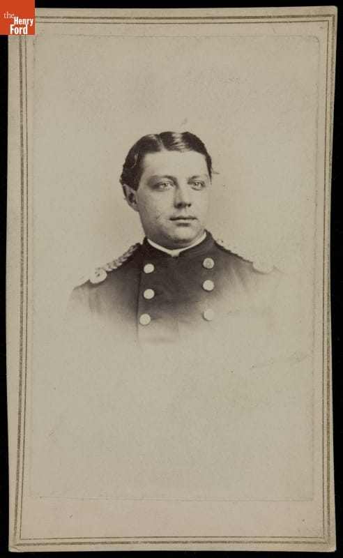 This carte-de-visite portrait shows a Union Marine Officer, Lieutenant Robert O'Neill Ford, who served on the USS Constellation in the Mediterranean Sea. Carte-de-visite was a small photographic print on cardboard stock made by professional photographers. Popular in the United States from the Civil War in the 1860s through the 1880s, people exchanged and collected CdVs to help them remember family and celebrities.