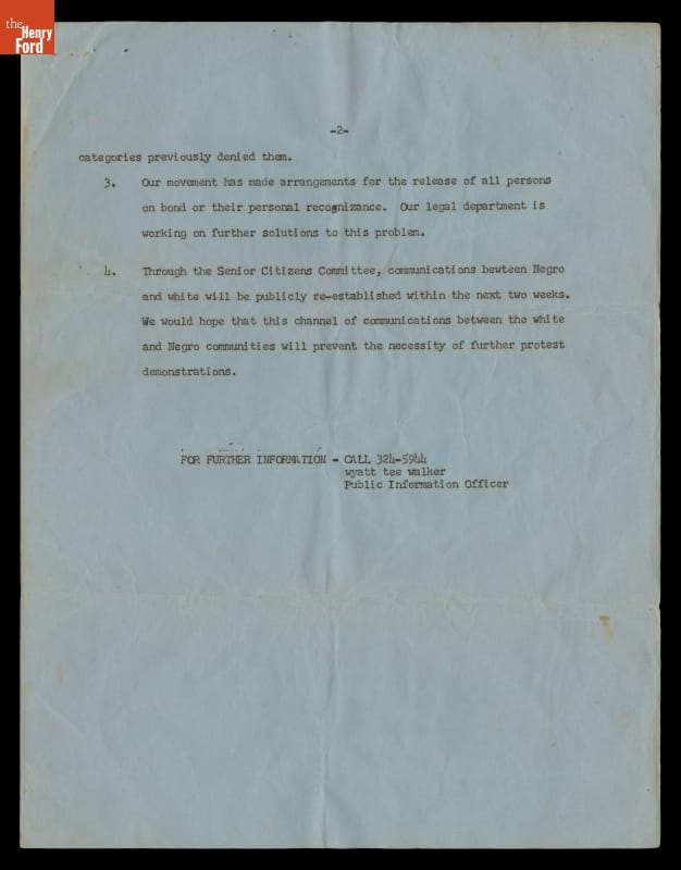 Press Release on the Birmingham Campaign, May 10, 1963