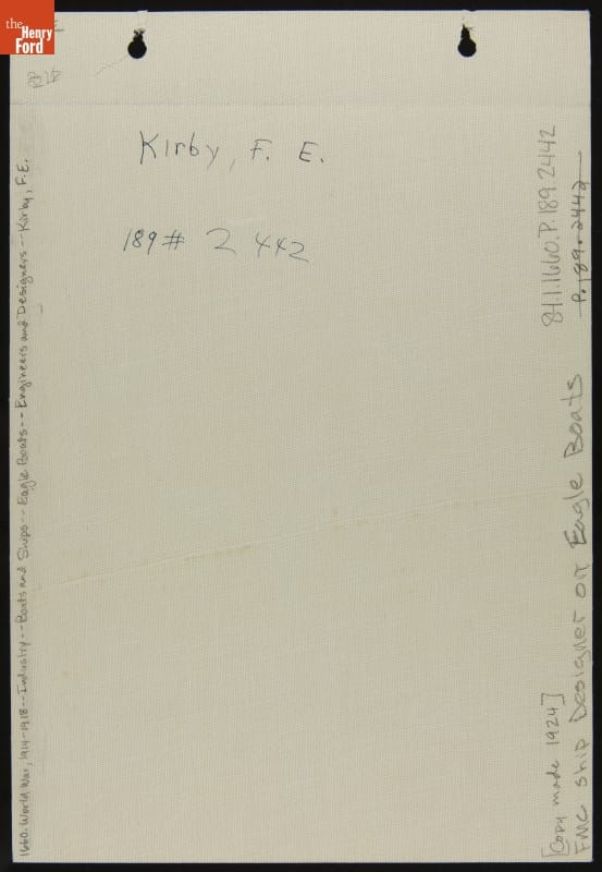 Frank E. Kirby was among the most influential marine architects of the late 19th and early 20th centuries. Kirby spent much of his career on the Great Lakes, where his Detroit Dry Dock Company built everything from opulent passenger steamers to powerful ice-breaking railroad car ferries. Kirby influenced Henry Ford, who apprenticed at Detroit Dry Dock as a teenager.