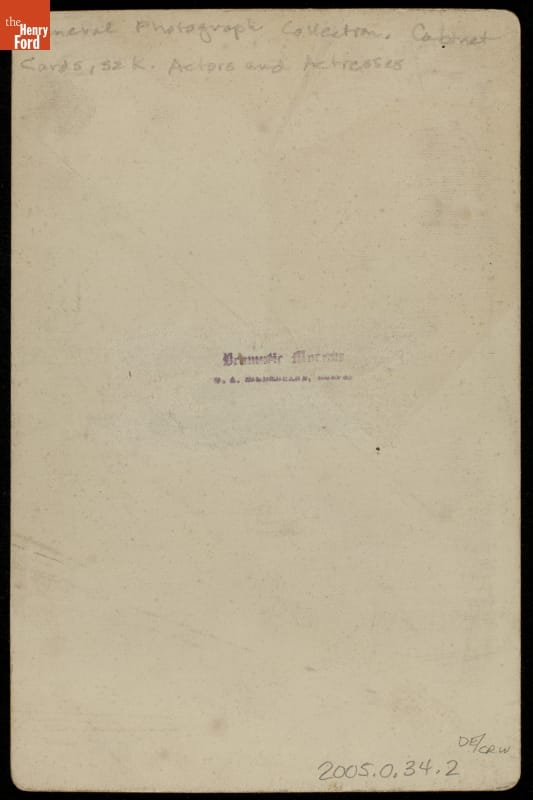 Professional photographers began producing cabinet cards in 1867. Consumers quickly preferred them over earlier cartes-de-visite, which were mounted on smaller cardboard stock. Through the early 1900s, Americans commonly exchanged and collected cabinet photographs of family, friends and celebrities. This example, made in Napoleon Sarony's New York City studio around 1895, depicts famous American actor and singer Chauncey Olcott.
