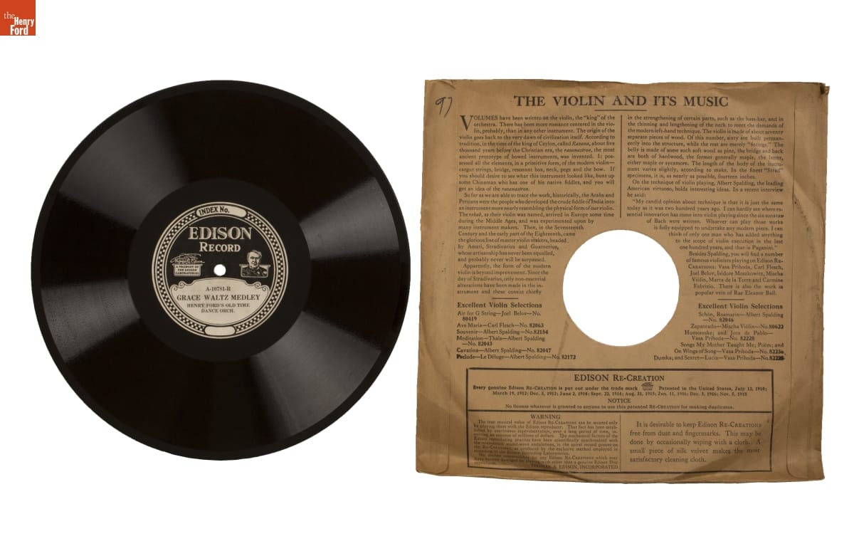 Manufactured by Thomas A. Edison, Inc., West Orange, both selections performed by Henry Ford's Old Time Dance Orchestra.