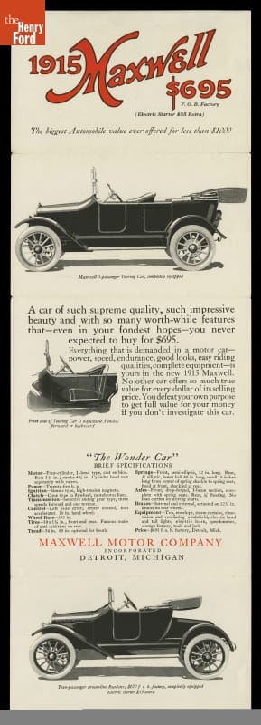 1915 Maxwell Motor Co. Sales Brochure, "More Automobile than You ever hoped for at $695"