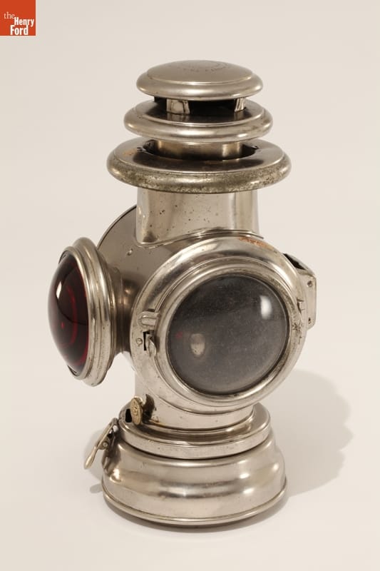 Taillights were not a standard fixture on early automobiles. Only when cars and roads improved -- and drivers braved the darkness -- did this safety feature become a necessity. Early taillights resembled carriage lamps found on horse-drawn vehicles. This kerosene-fueled tail lamp -- cars usually had only one -- used a red lens to warn approaching vehicles. A clear lens illuminated the license plate or back step.