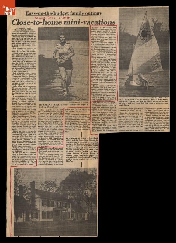 Macomb Daily Newspaper Article, "Easy on the Budget Family Outings, Close to Home Mini-Vacations" 1980
