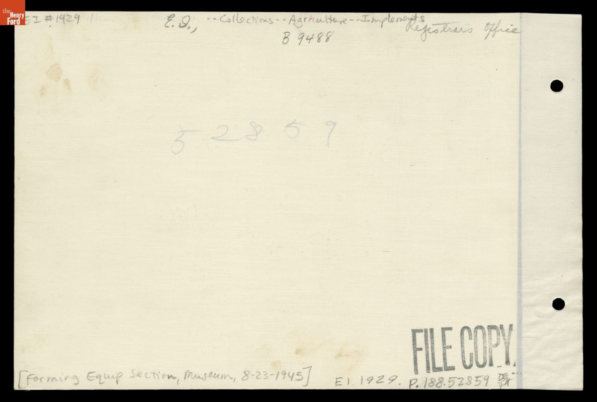 THF136595 / Agricultural Implements on Exhibit in Henry Ford Museum, 1945