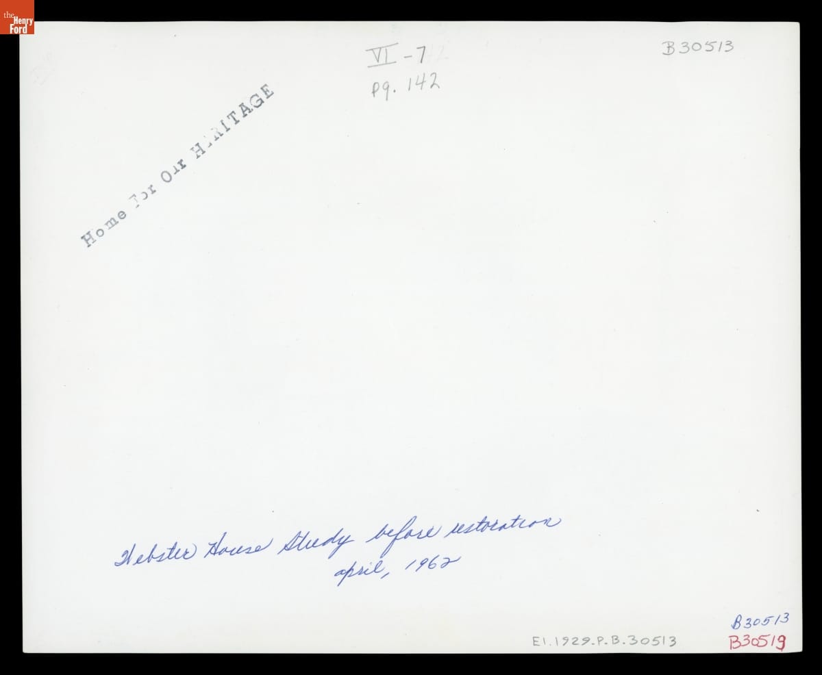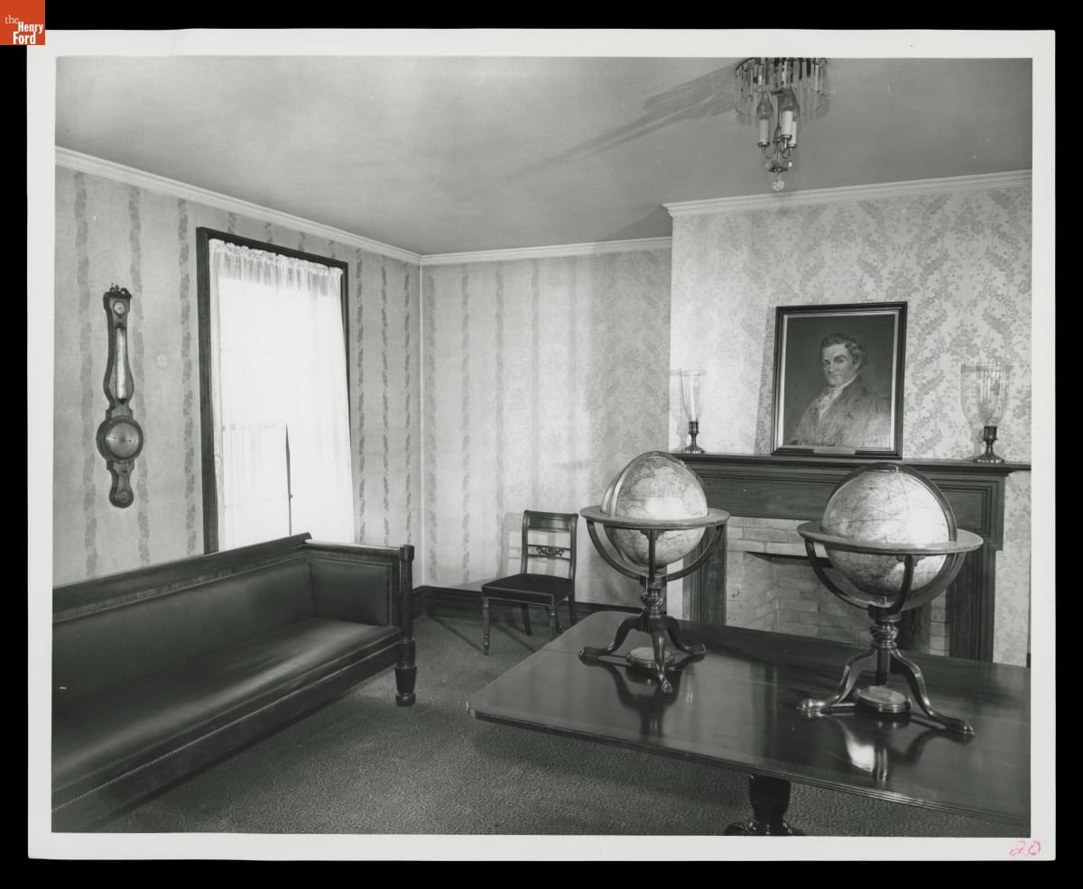 During Exhibit Installation in the Second Floor Study of Noah Webster Home in Greenfield Village, April 1962