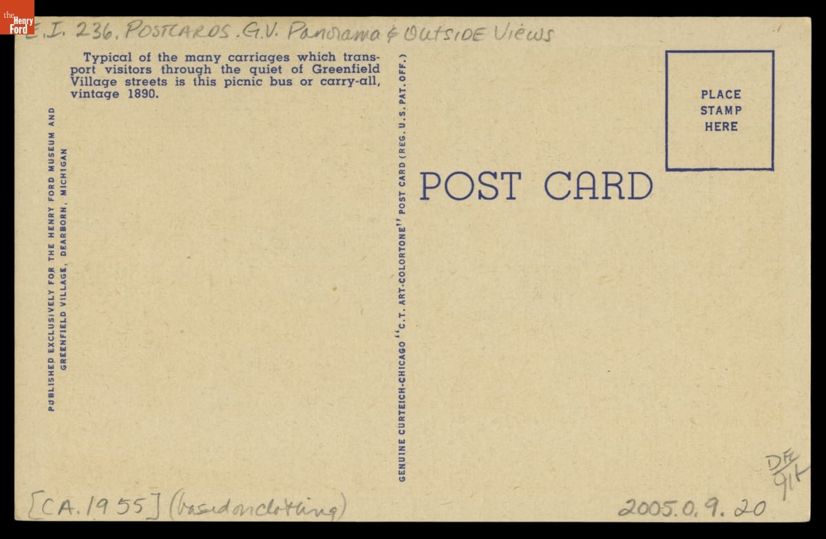 Visitors in Horse-Drawn Carriage, Greenfield Village, Dearborn, Michigan, 1952
