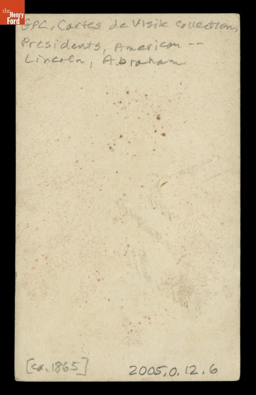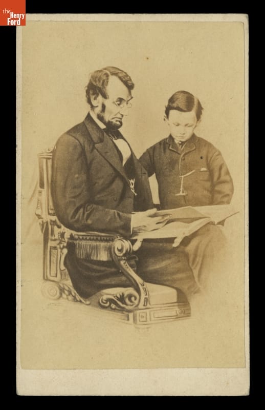 A popular image of Lincoln and Tad, it was offered for sale in the form of photographs, lithographs and engravings because of its appealing subject of Abraham Lincoln as a father. In the mid-19th century, small photographs like this one, known as cartes-de-visite, were a popular size to gather into photograph albums similar to the one Lincoln holds in this image. Photographs of famous people like President Lincoln were often purchased and placed in albums along with those of one's family and friends.