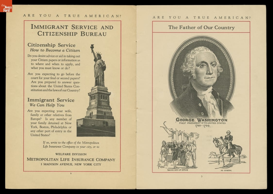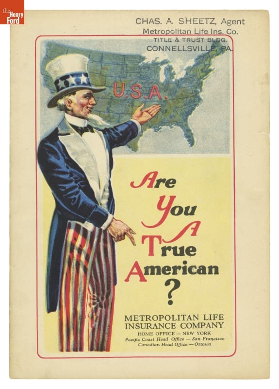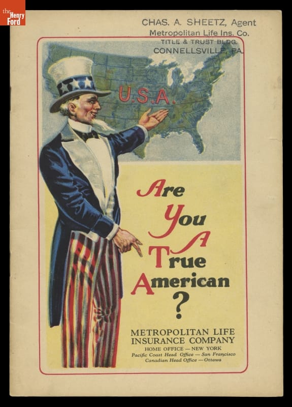 Metropolitan Life Insurance Company was a private agency that set up Americanization programs. Anglo-Americans utilized these programs to assimilate immigrants into "true Americans" preserving the integrity of their perceived concept of America. Pamphlets like the one pictured here, were passed out to immigrants and provided information on citizenship and American values.