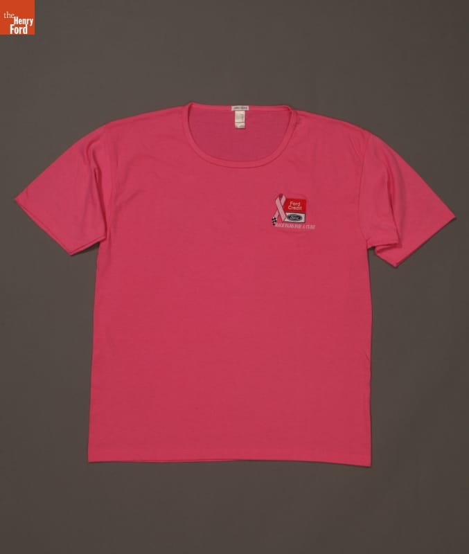 One of Ford Motor Company's philanthropic ventures was Race Fans for a Cure, which supported the Susan G. Komen Breast Cancer Foundation's efforts to raise awareness of breast cancer and fund the search for a cure. Supporters of Race Fans for a Cure could wear this promotional shirt.
