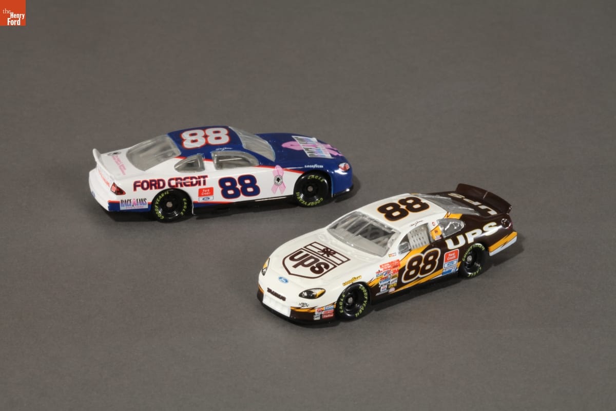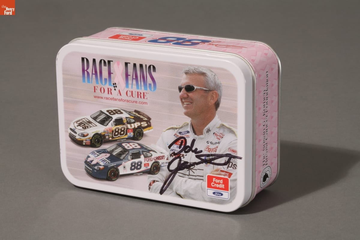 One of Ford Motor Company's philanthropic ventures was Race Fans for a Cure, which supported the Susan G. Komen Breast Cancer Foundation's efforts to raise awareness of breast cancer and fund the search for a cure. Some supporters of Ford's organization received collectible racing cars. This set is autographed by driver Dale Jarrett.