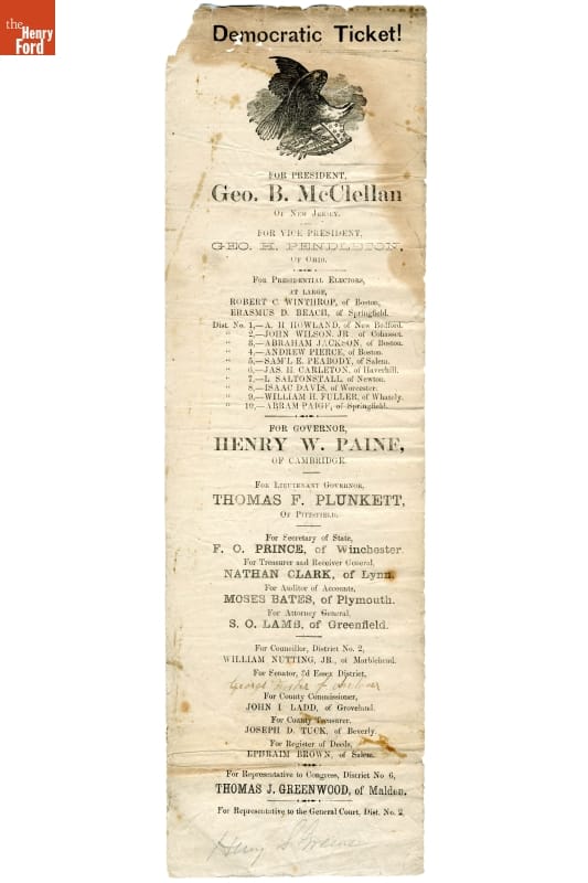 Democratic Party Presidential Election Ballot, Massachusetts, 1864