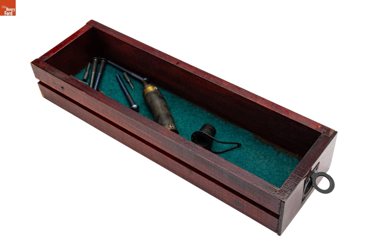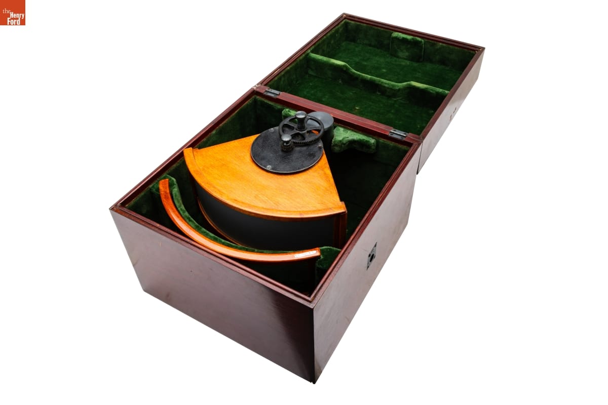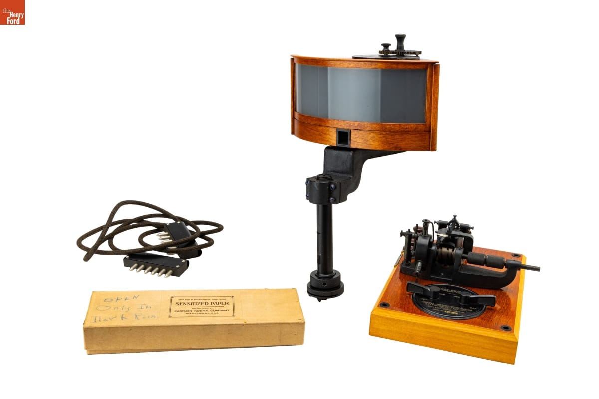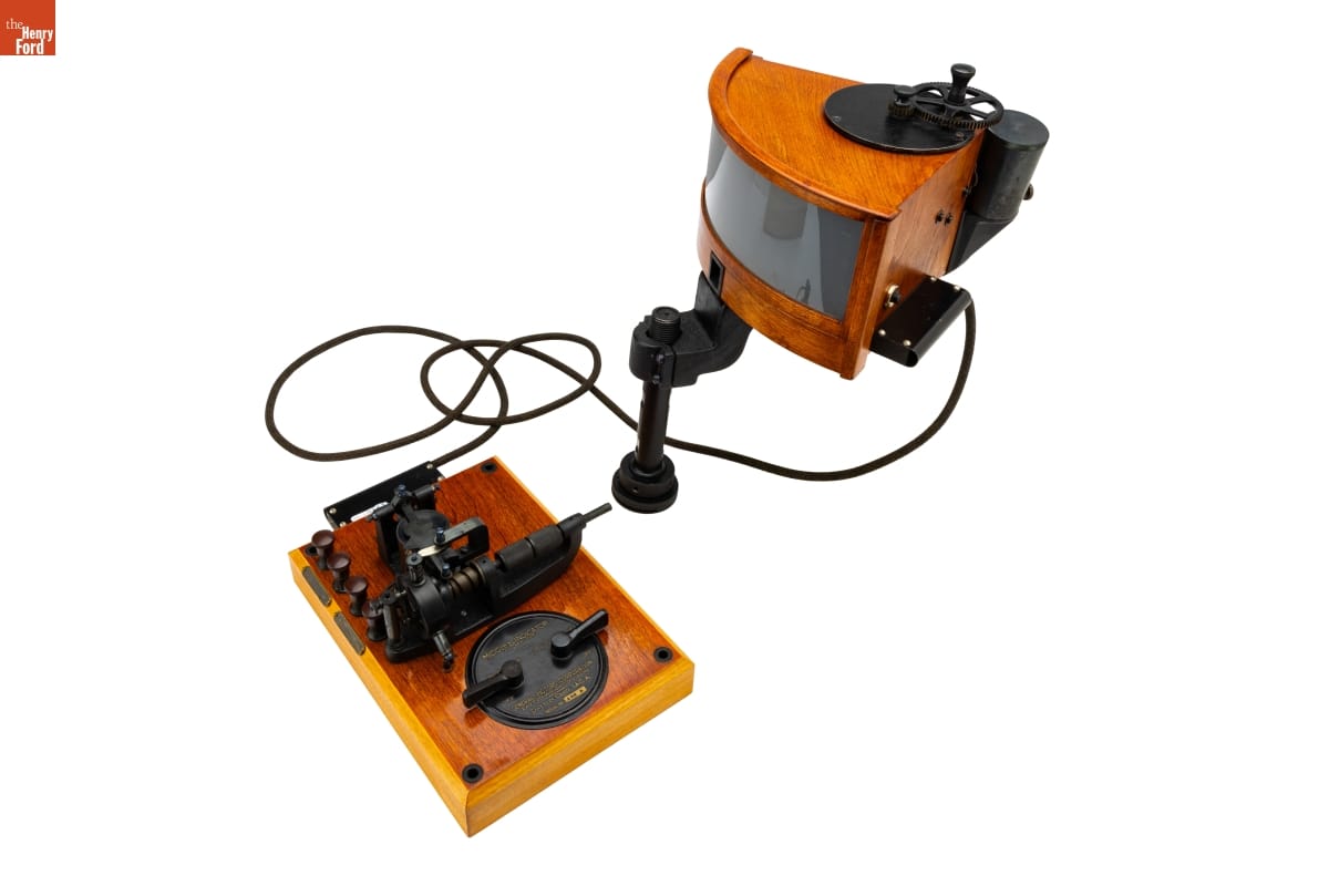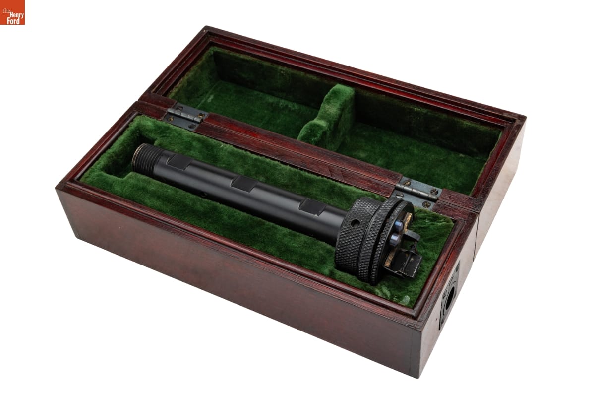 In the early 1920s, engineer Thomas Midgley worked with General Motors research head Charles Kettering to reduce engine knocks caused by uneven burning of gasoline in automobile engines. Midgley developed this indicator to measure engine cylinder pressure. The device recorded its readings on photosensitive paper. Midgley and Kettering ultimately discovered that adding tetraethyl lead to gasoline prevented knocks.