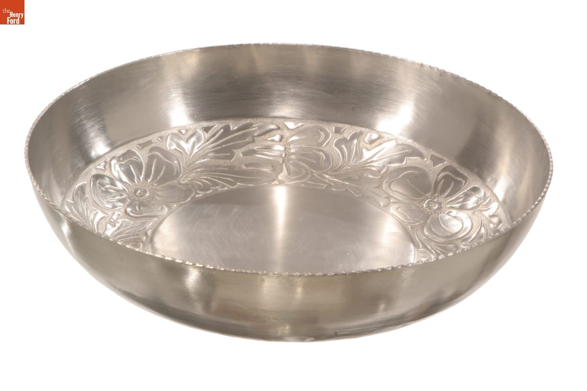 In 1932, Louis Schnitzer and Nathan Gelfman formed Everlast Metal Products Corporation, producing high-quality, hand-forged aluminum giftware. In an era of growing uniformity via factory production, the "made by hand" aspect of these products held an aesthetic appeal for consumers. By 1937, Everlast had introduced its "Intaglio" product line, featuring machine-stamped decorative motifs that were lighter in weight and more affordable than silver.