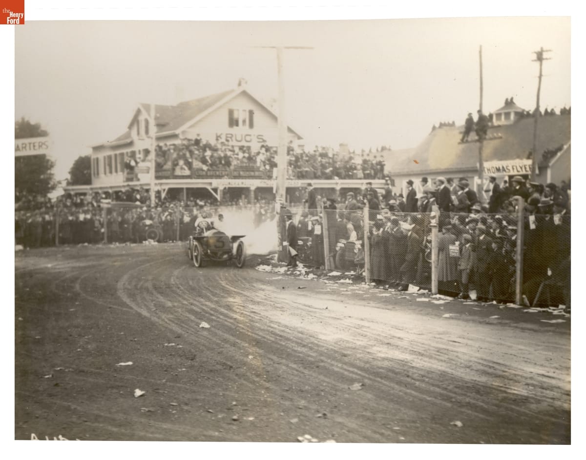 Belgian driver Camille Jenatzy earned his nickname "Red Devil" thanks to his red hair and beard, and his record-setting successes in land speed racing. He competed in the 1906 Vanderbilt Cup in the #3 Mercedes. Jenatzy placed third in the race, which was cut short when many of the estimated 200,000 onlookers spread onto the course.