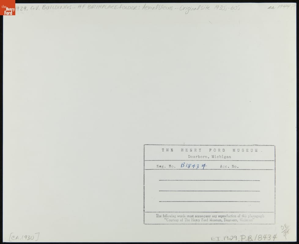 Aerial View of Ford Home (Henry Ford's Birthplace) at Its Original Location, Dearborn, Michigan, 1931