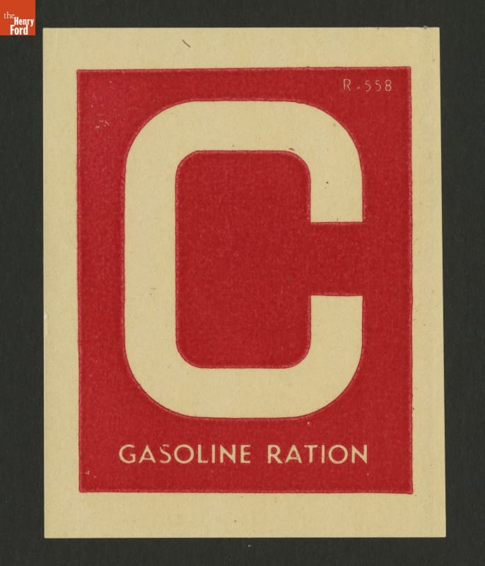 The amount of gasoline you received during World War II depended on whether your job was essential to the war effort. Drivers received a windshield sticker and ration coupons for gasoline. Essential workers who had special occupational travel requirements, like clergy, physicians, mail carriers, or government officials, received "C" stickers.